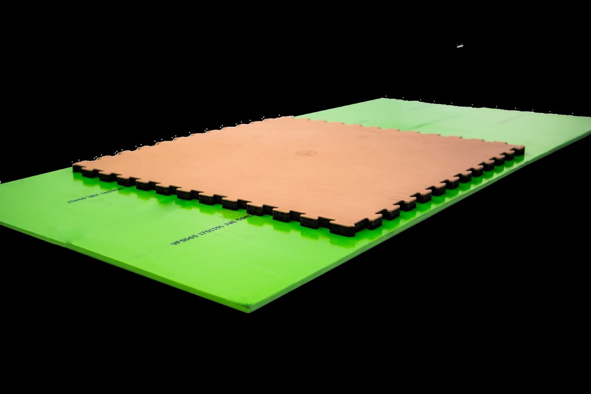 BigJag je prvá akustická podlaha na svete, ktorá je integrálne inštalovaná v nezávislých 1m2 moduloch, pričom dosahuje maximálnu izoláciu vibrácií a hluku spôsobeného padajúcimi závažiami v telocvičniach. Jediná dlaždica - obsahuje všetko potrebné pre maximálne odhlučnenie, ako aj špecifický športový povrch.